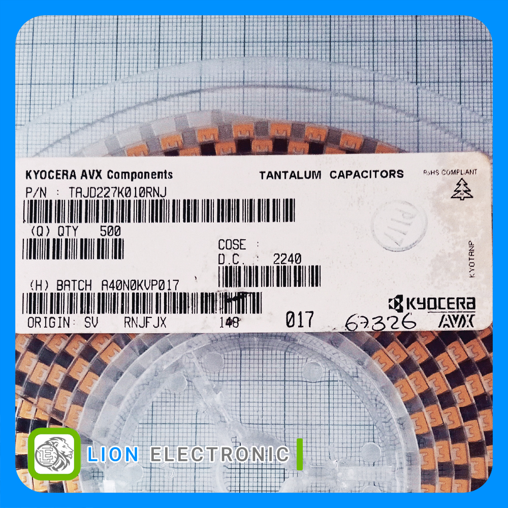 خازن تانتالیوم 220 میکروفاراد 10 ولت سایز D