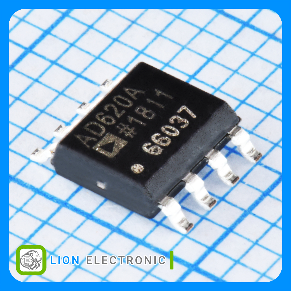AD620 یک تقویت کننده ابزار دقیق با دقت بالا است. تقویت کننده ای که تنها به یک مقاومت خارجی برای تنظیم گین نیاز دارد، گین این تقویت کننده بین عدد 1 تا 10000 قابل تنظیم است. این تقویت کننده در دو پکیج SOIC-8 و DIP-8 تولید میگردد. به دلیل مصرف توان پایین این تقویت کننده گزینه مناسبی برای استفاده در دستگاههای قابل حمل که از باتری تغذیه میکنند، میباشد. AD620 به دلیل غیر خطی بودنش به مقدار حداکثر 40 ppm و ولتاژ آفست پایین حداکثر 50 میکرو ولت و مناسب استفاده در سیستمهای ابزار دقیق جمع آوری داده و دستگاههایی مانند ترازو میباشد. علاوه بر این، نویز پایین، جریان بایاس کم و مصرف توان ناچیز AD620 را مناسب کاربردهای پزشکی مانند دستگاه ECG و اندازه گیری فشار خون مینماید.