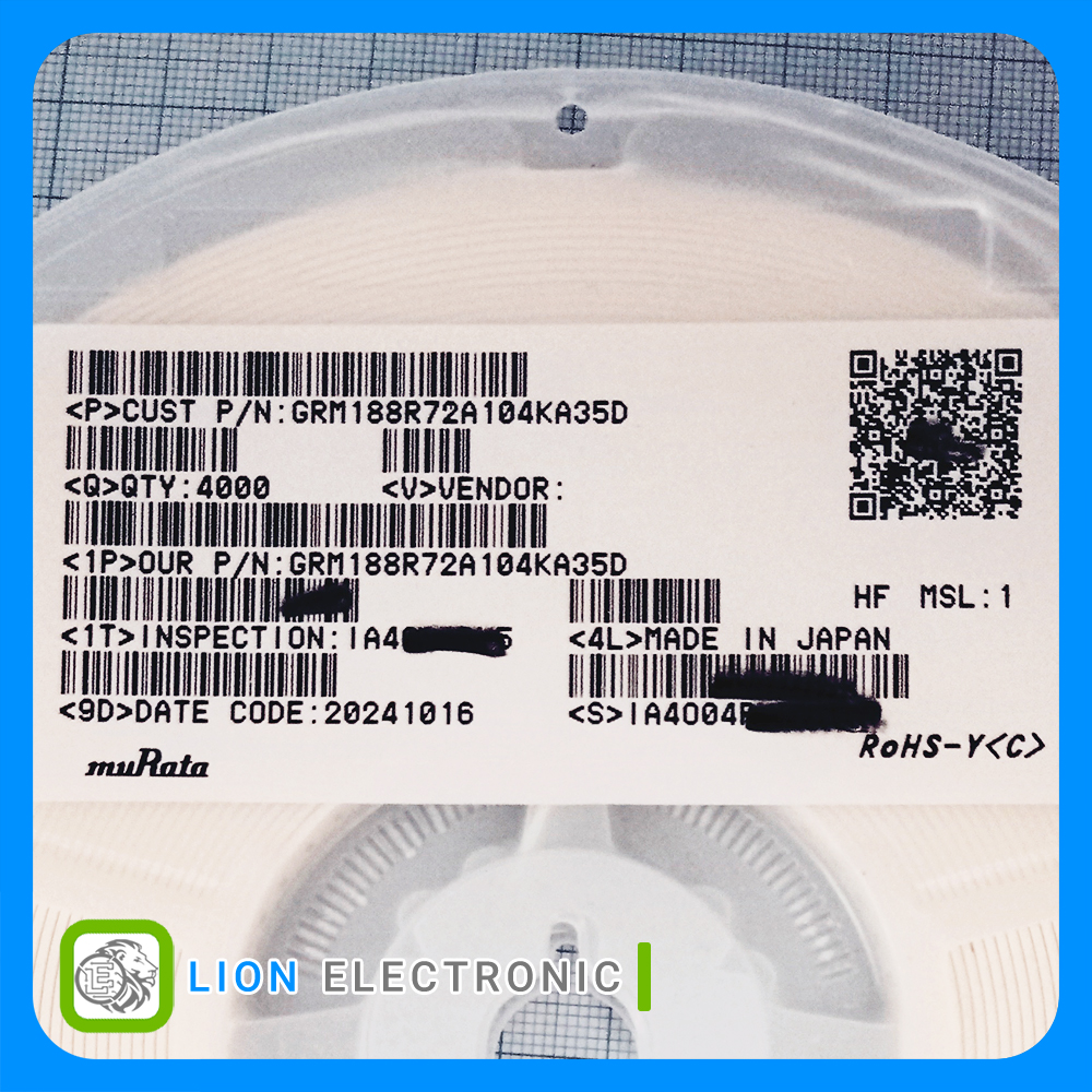 خازن 100 نانو فاراد 100 ولت سایز 0603