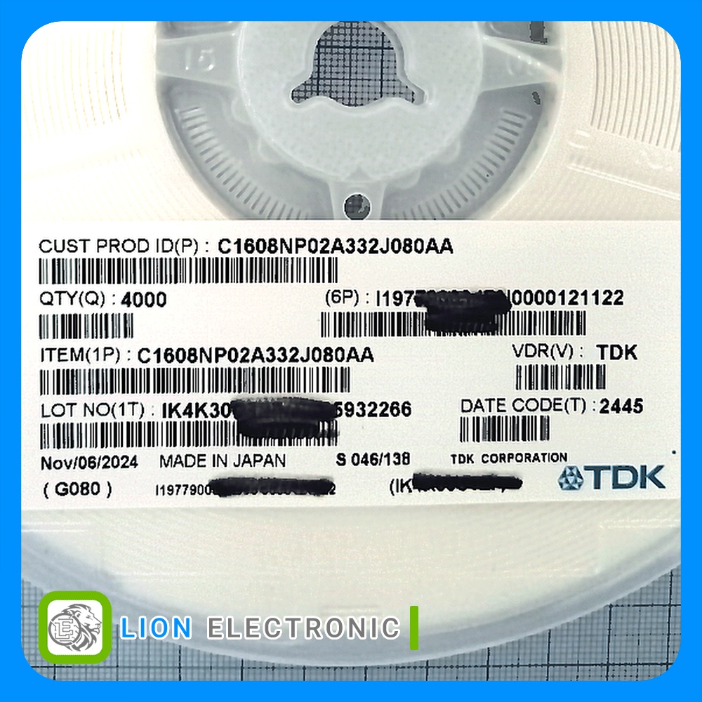 مشخصات خازن C1608NP02A332J080AA