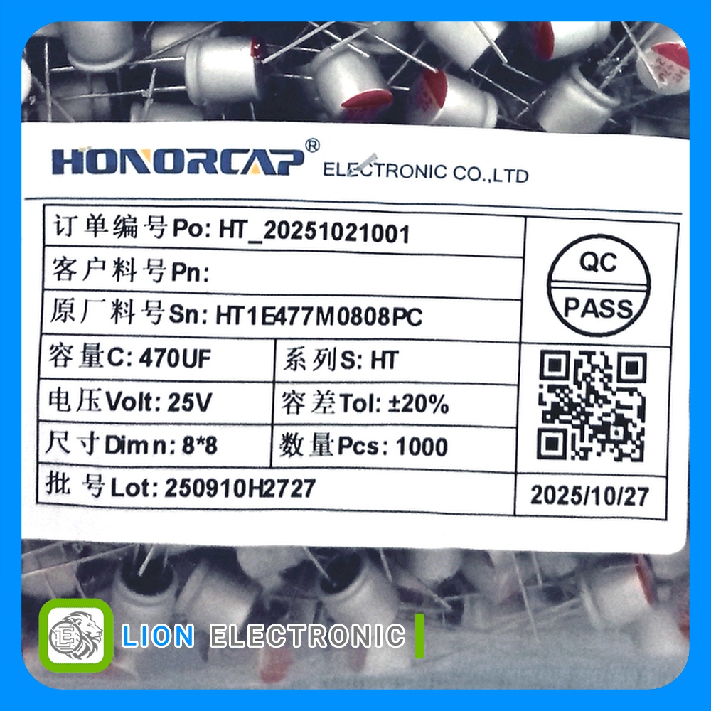Solid Polymer Electrolytic Capacitor 25V 470uF Plugin 8x8mm