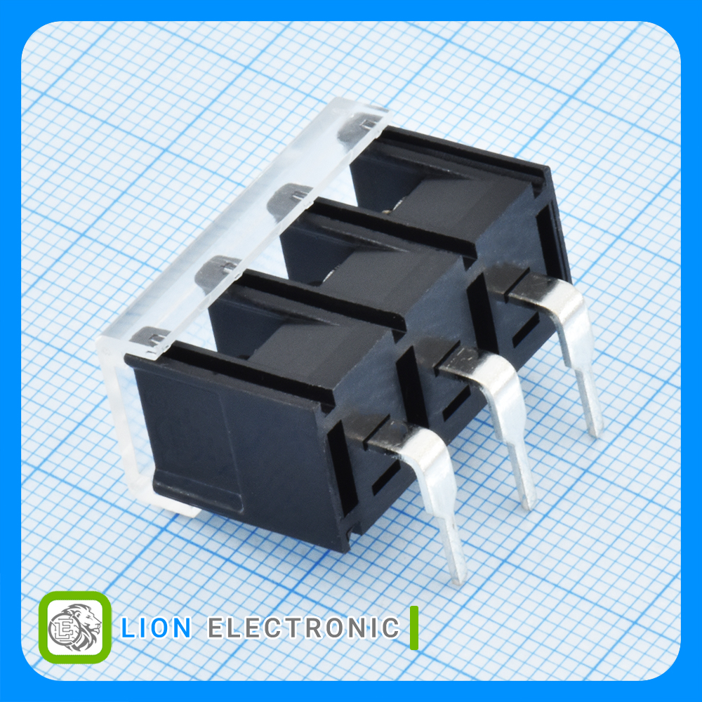1x3P With Cover Plate 8.25mm 24A 450V Right Angle Black Barrier Terminal Blocks