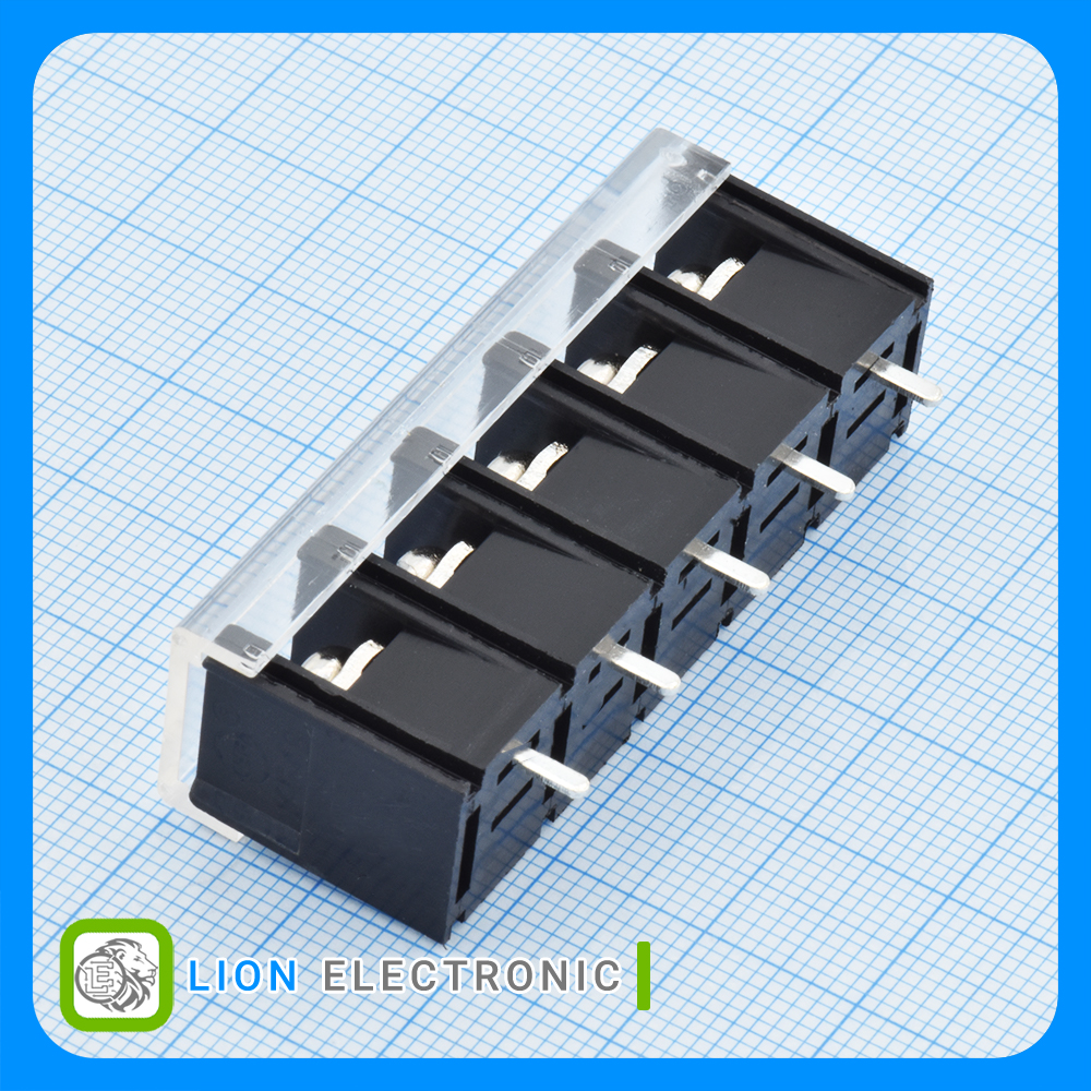 1x5P Side Mount With Cover Plate 9.5mm 32A 750V Black Straight Barrier Terminal Blocks