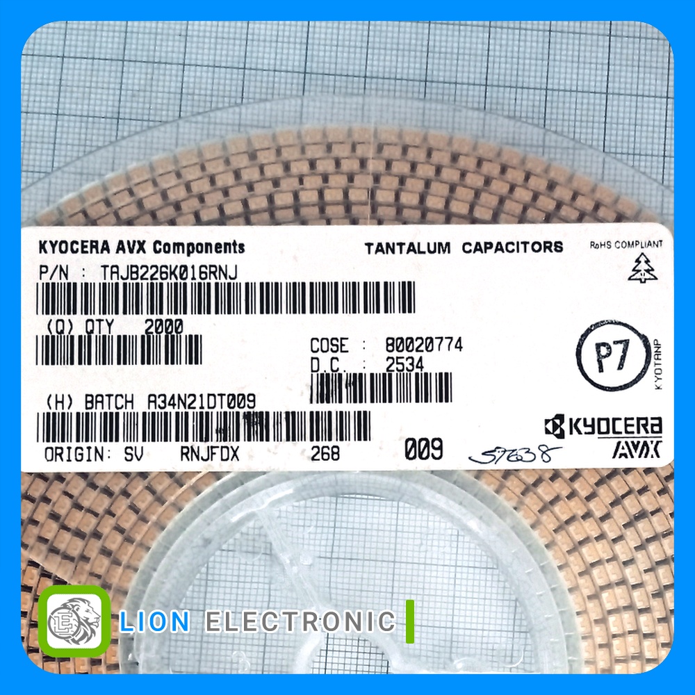 خازن تانتالیوم 22 میکروفاراد 16 ولت سایز B