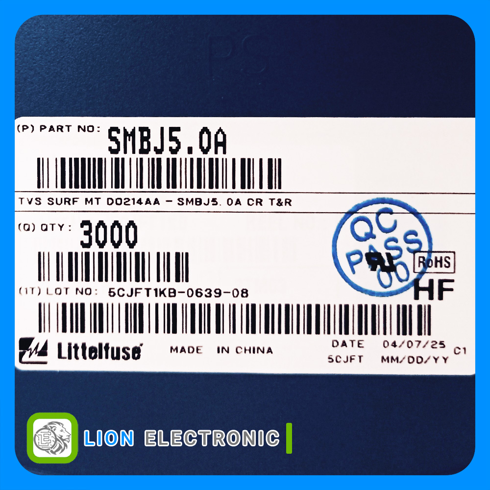 دیود TVS یک جهته 5 ولت با بیشنه پالس جریان 65.3 آمپر با پکیج SMB