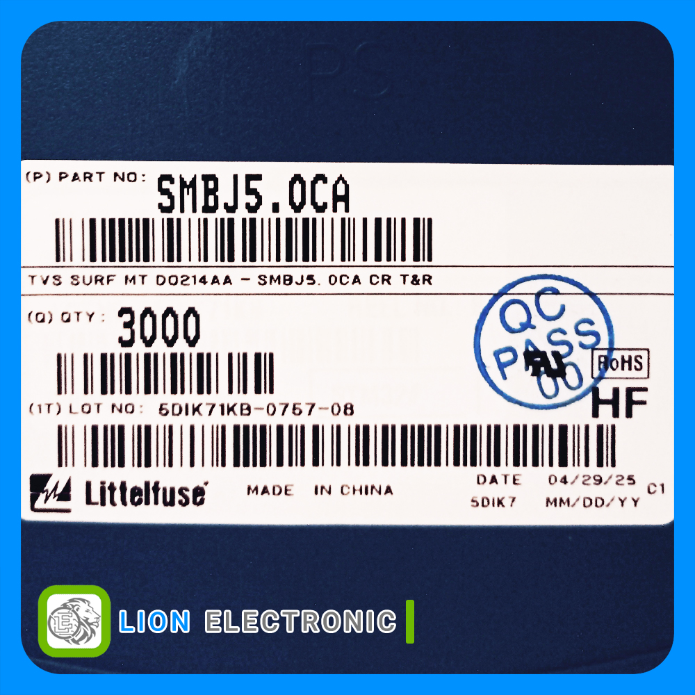 دیود TVS دو جهته 5 ولت با بیشنه پالس جریان 65.3 آمپر با پکیج SMB