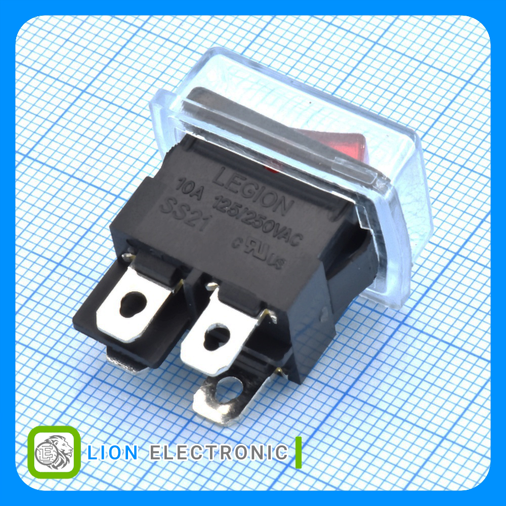 DPST Red PC Pin 10A 250V 10000 Cycles Through Hole,21x15mm Rocker Switches